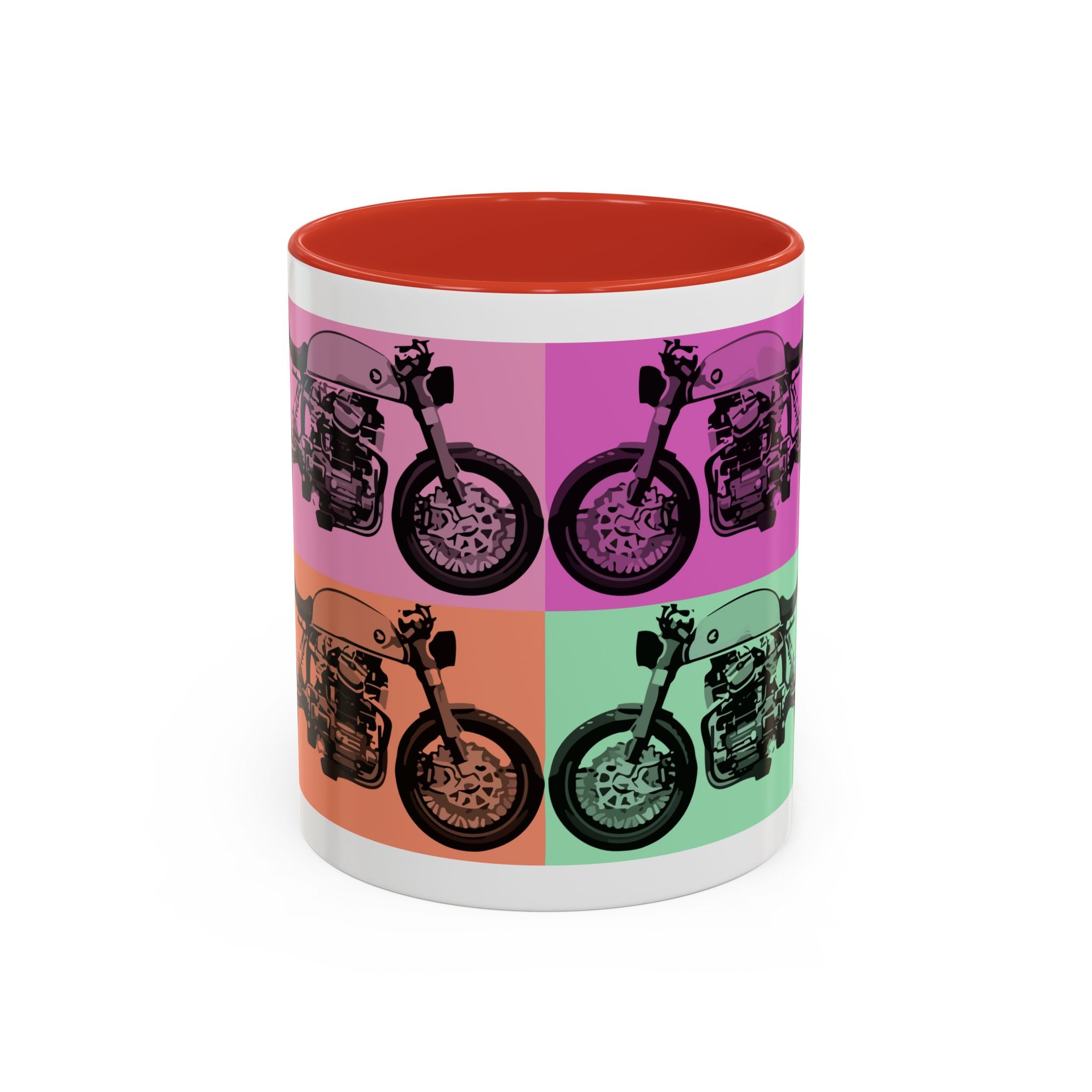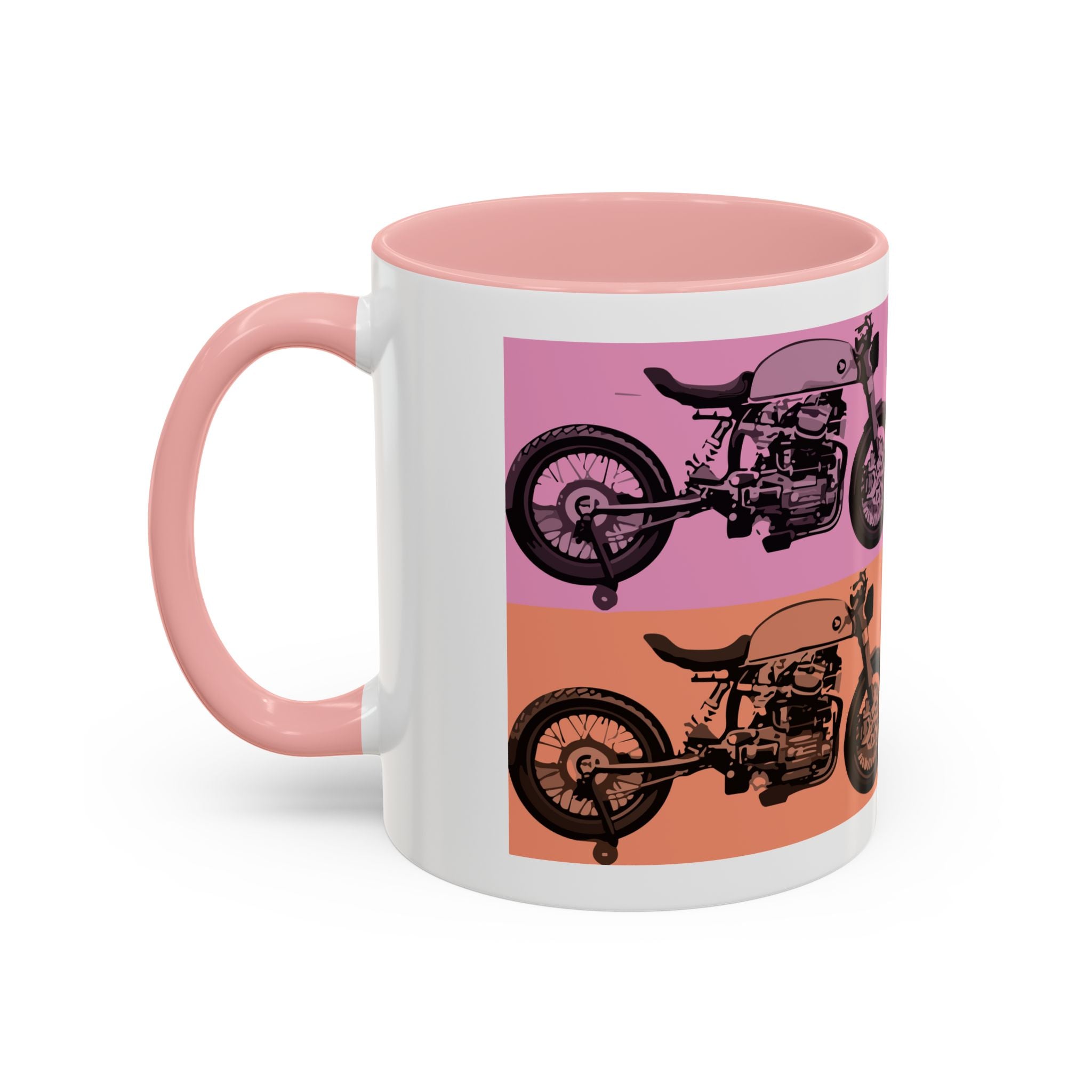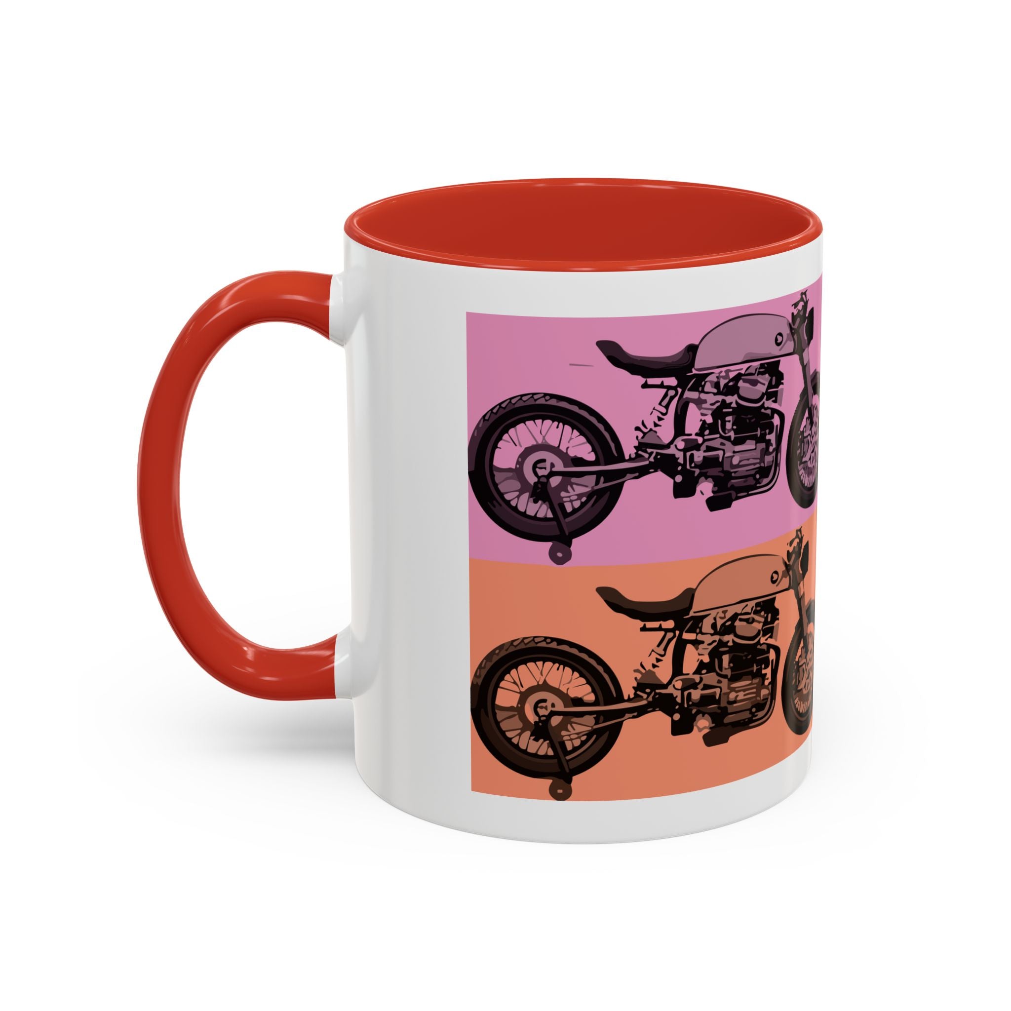 This ceramic mug brings a touch of vintage motorcycle culture to your morning ritual. Smooth, glossy white with a bold colored handle and interior, it carries the retro “cx500 Cafe Racer” motif that feels like a sun-warmed café seat by the roadside. It’s sturdy in hand and lively on the counter—bright print work that holds up through scrub and heat. For people who live for throttle moments and slow coffee stops, this mug slips into the rhythm: quick sips before a dawn ride, slow pours while planning the next route, or a mid-afternoon pause that tastes like open road air. The color contrast and crisp artwork give it that lived-in-cafe vibe without fuss. Practical enough for everyday use, it also reads like a subtle nod to vintage bike culture when friends notice the design.