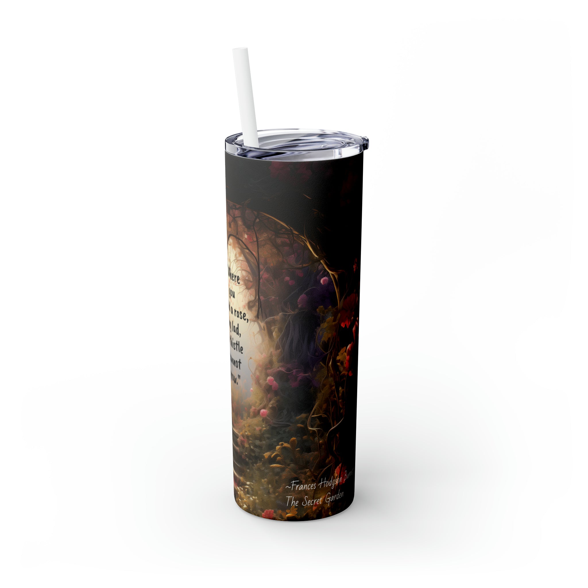 Enhance your sipping experience with a quote from 'The Secret Garden' that captures the essence of nurturing positivity: 'Where you tend a rose, my lad, a thistle cannot grow.' This quote graces the tumbler, reminding you to cultivate positivity and beauty in your life.