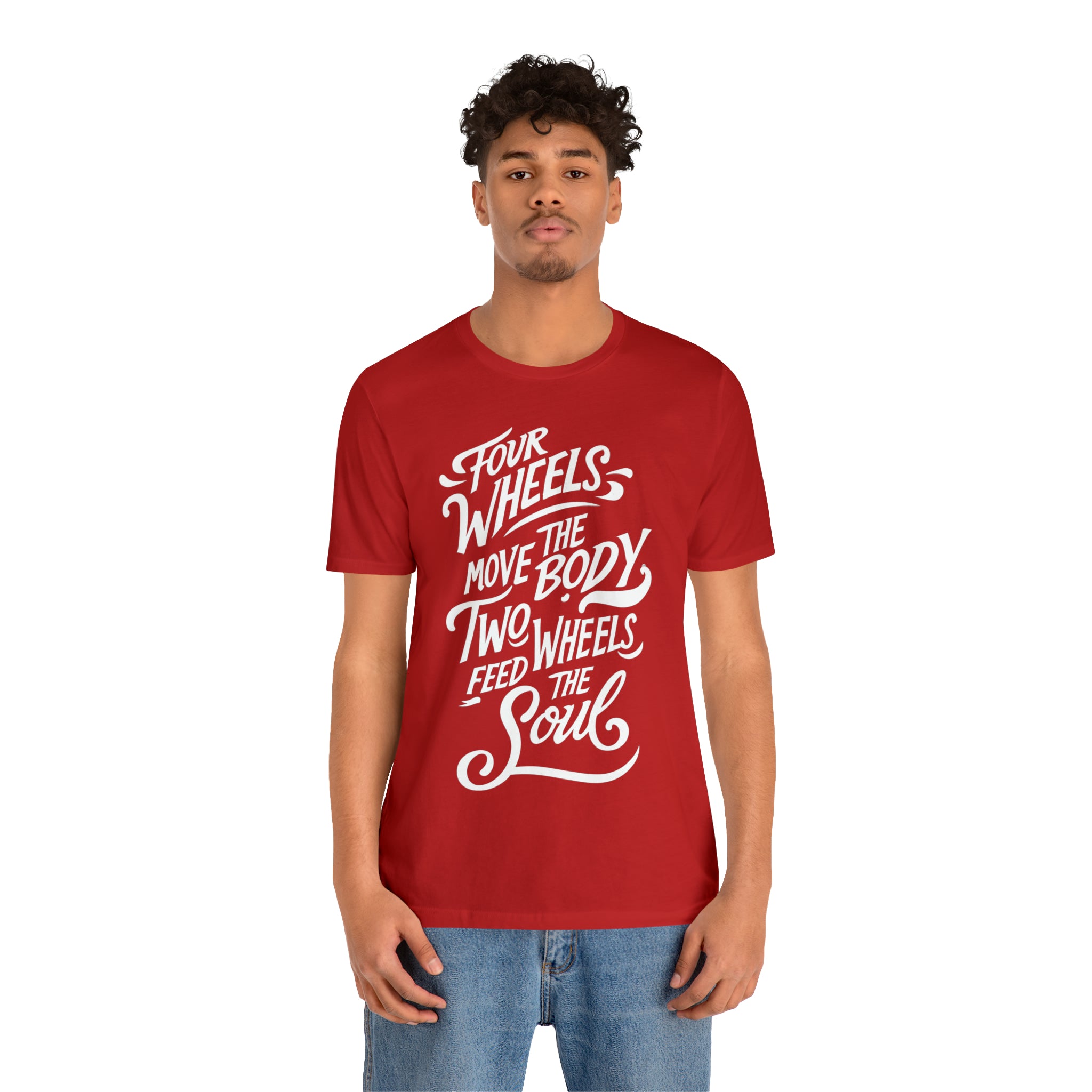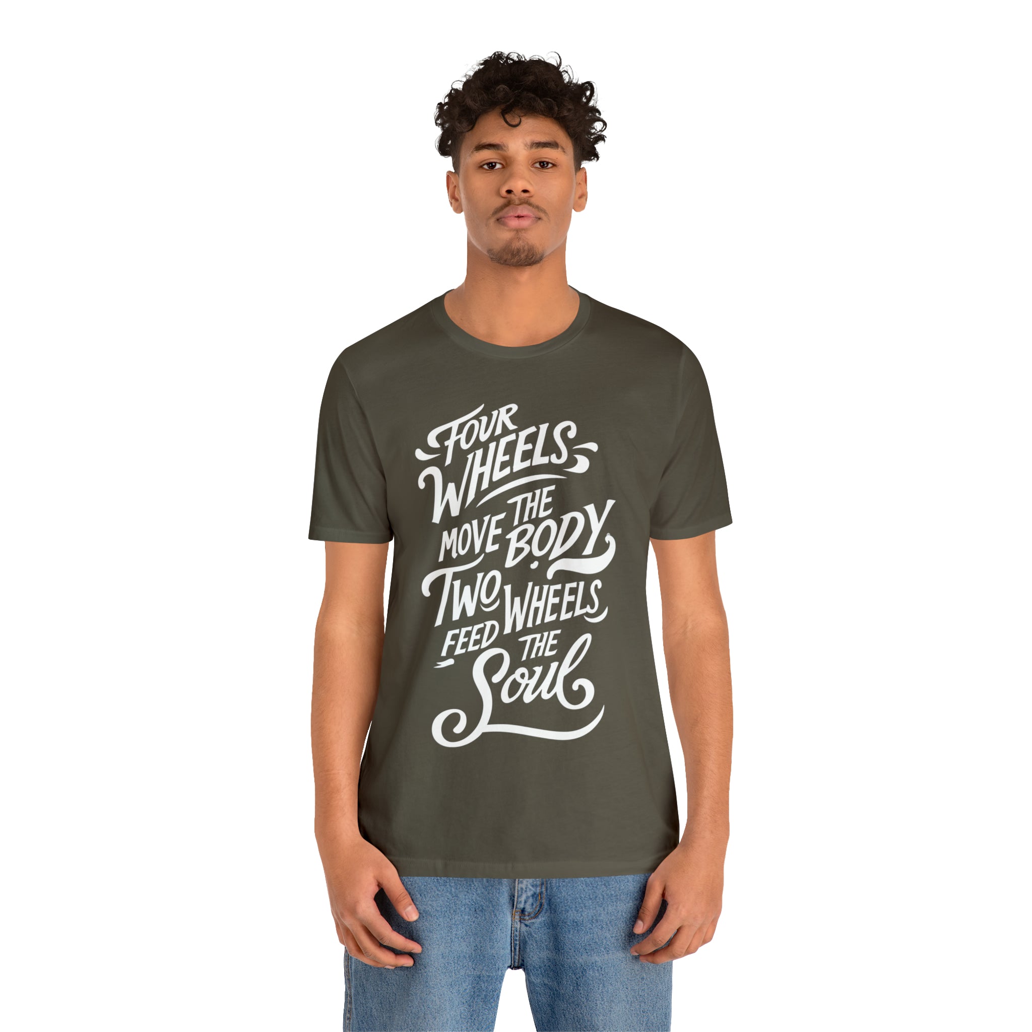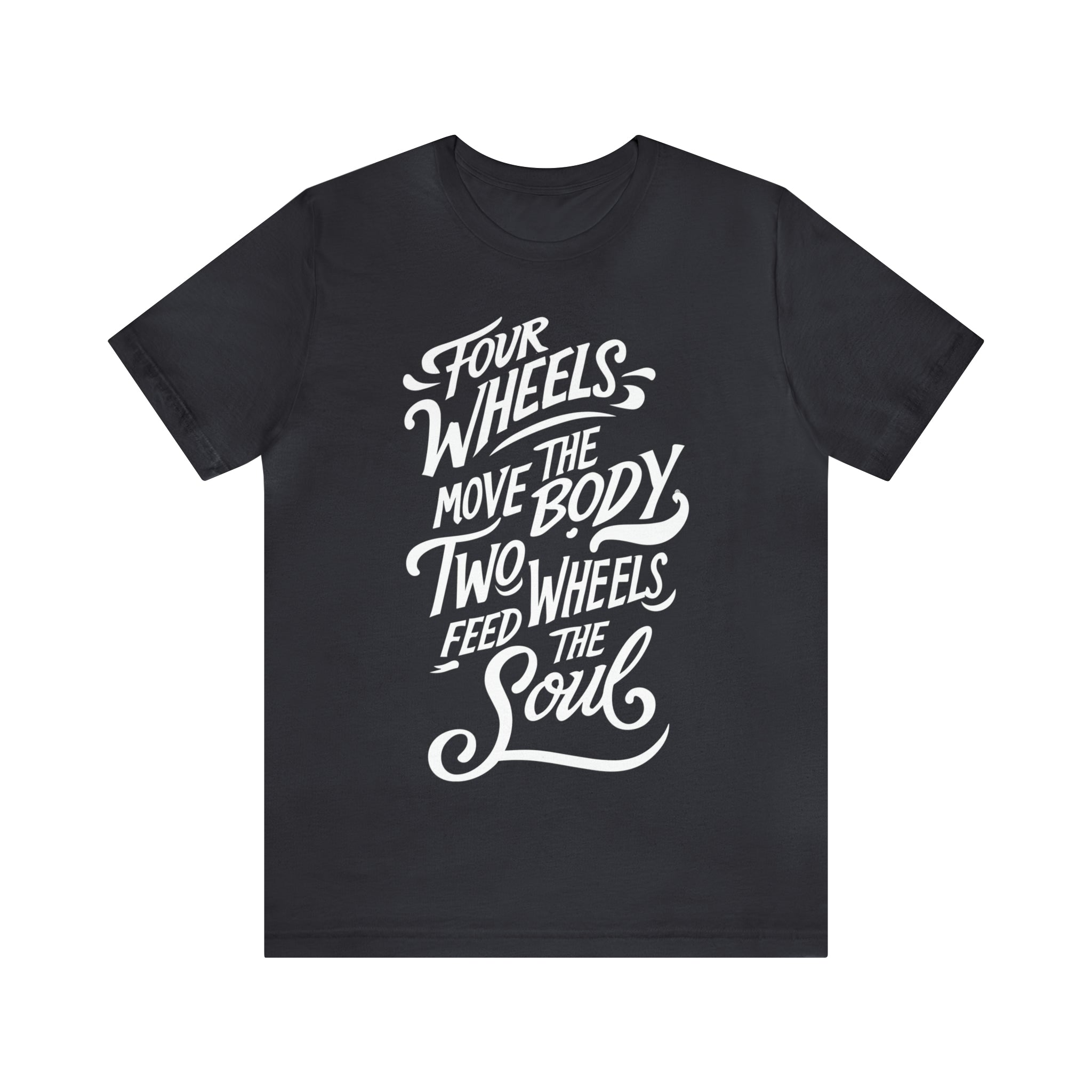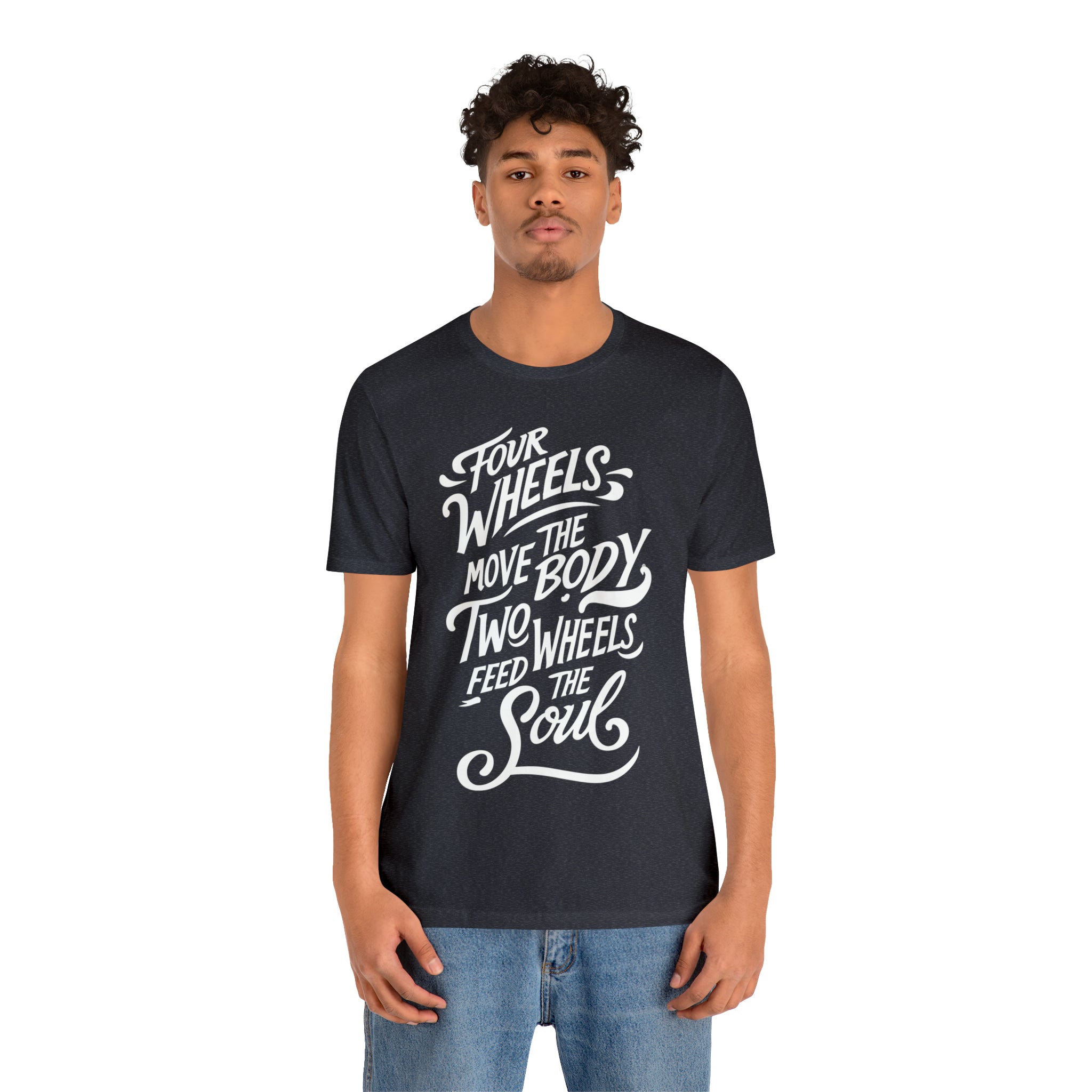 Go out in Style in this Tee. Made for motorcycle enthusiasts... 4 Wheels Move the Body 2 Wheels Feed The Soul!