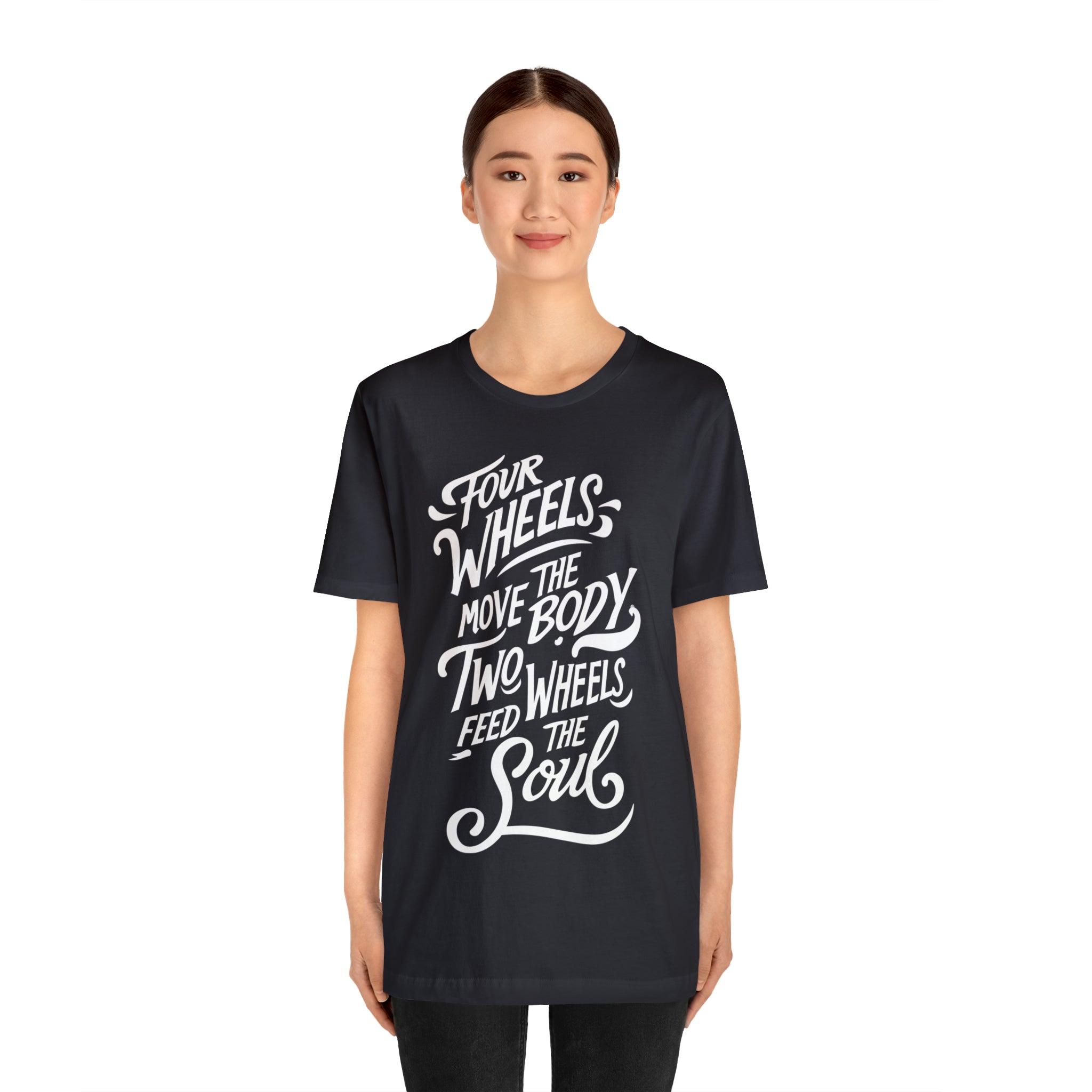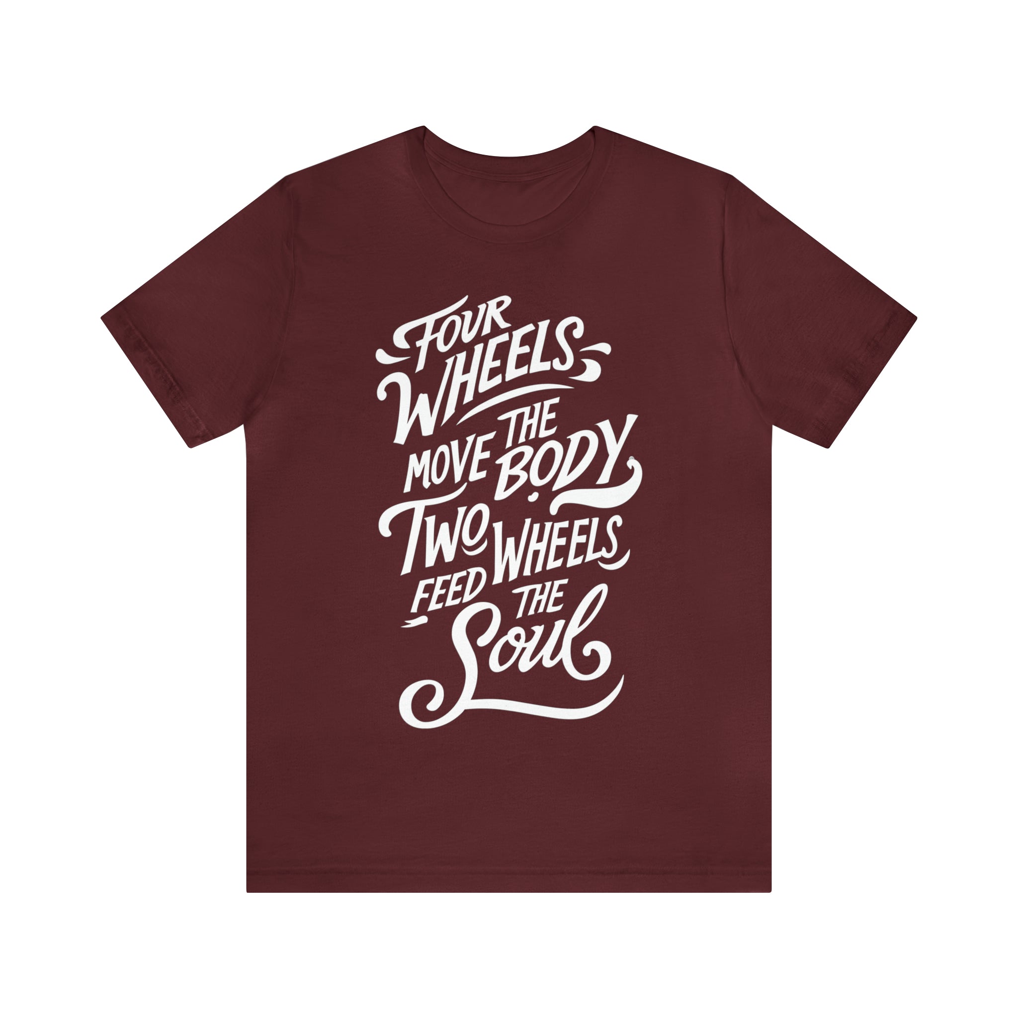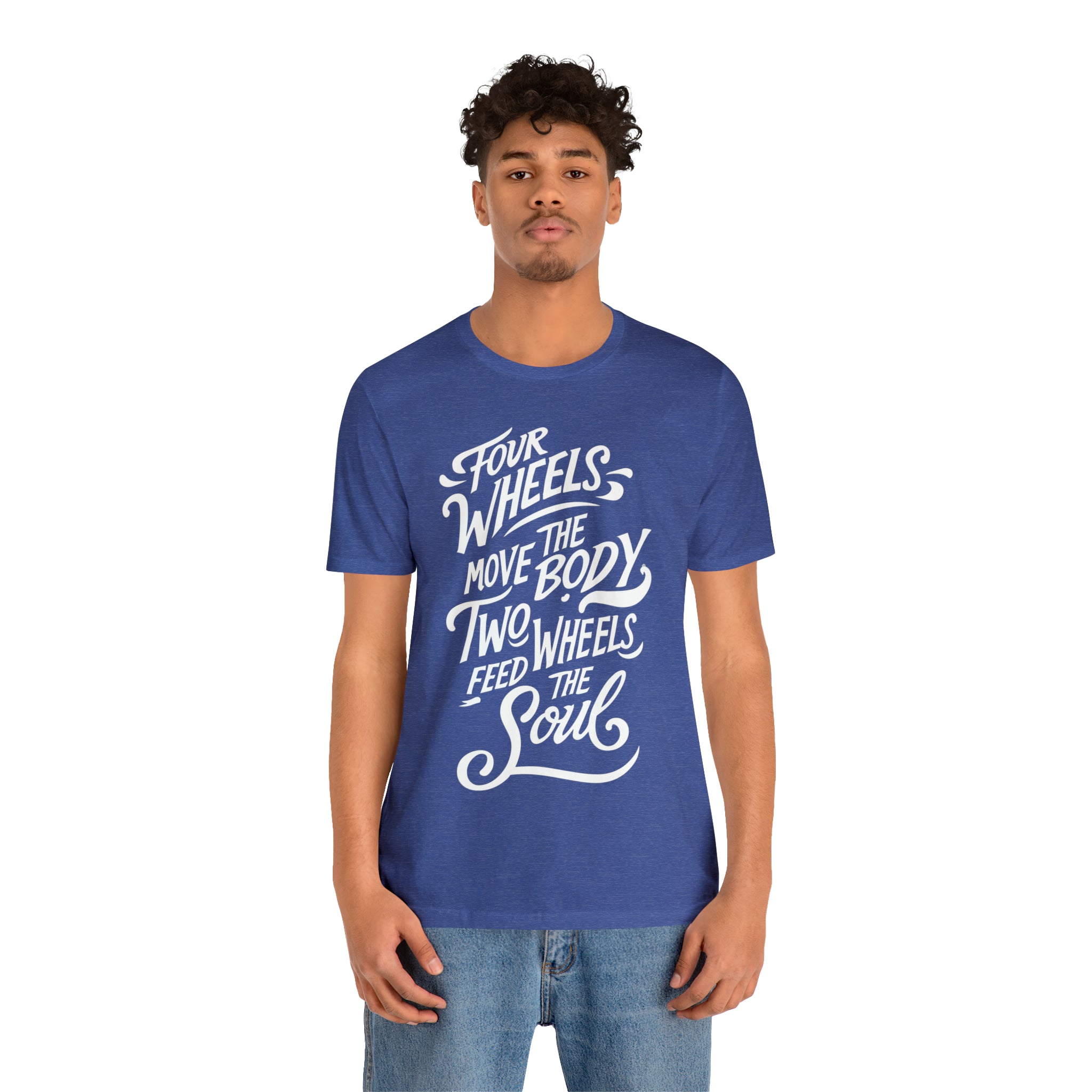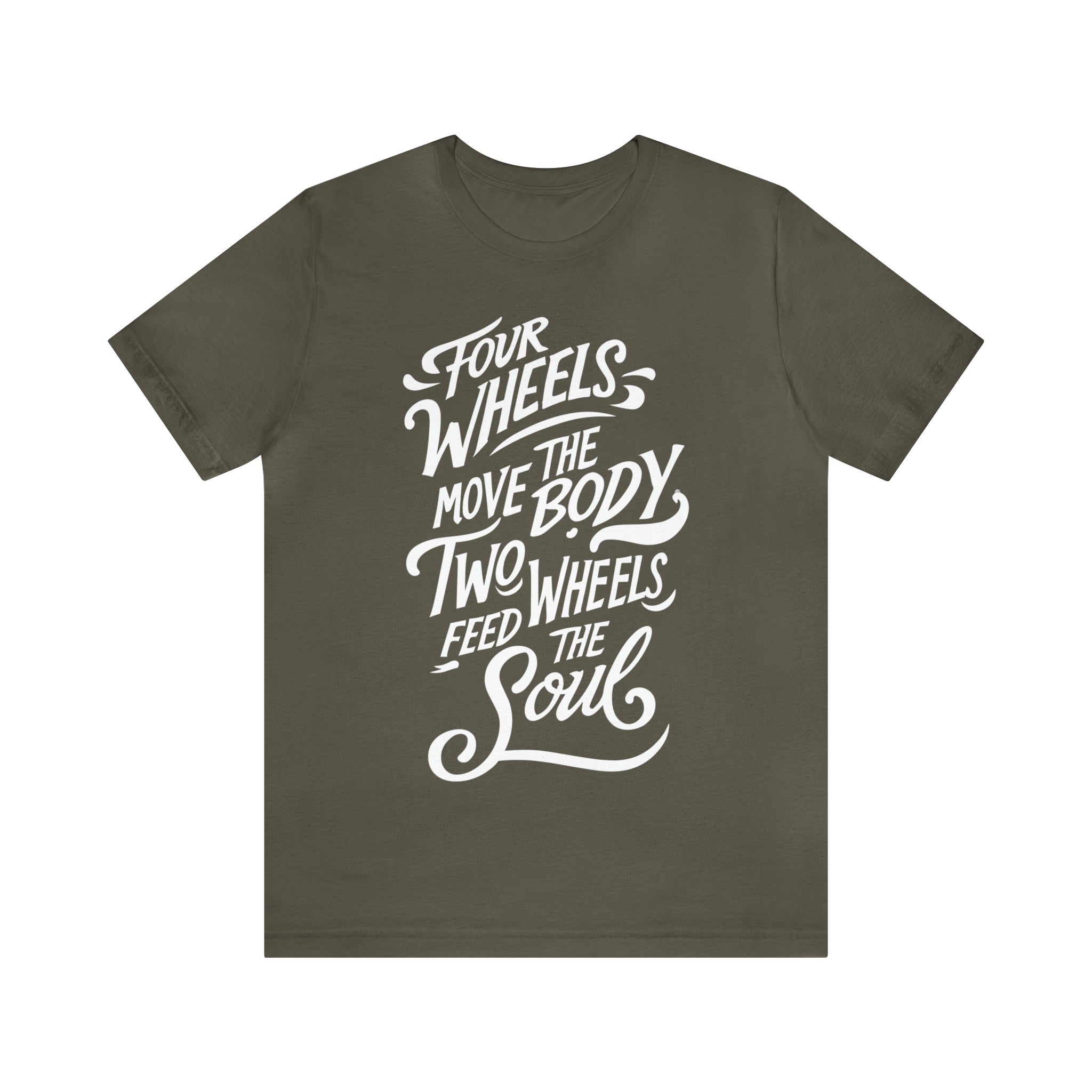 Go out in Style in this Tee. Made for motorcycle enthusiasts... 4 Wheels Move the Body 2 Wheels Feed The Soul!