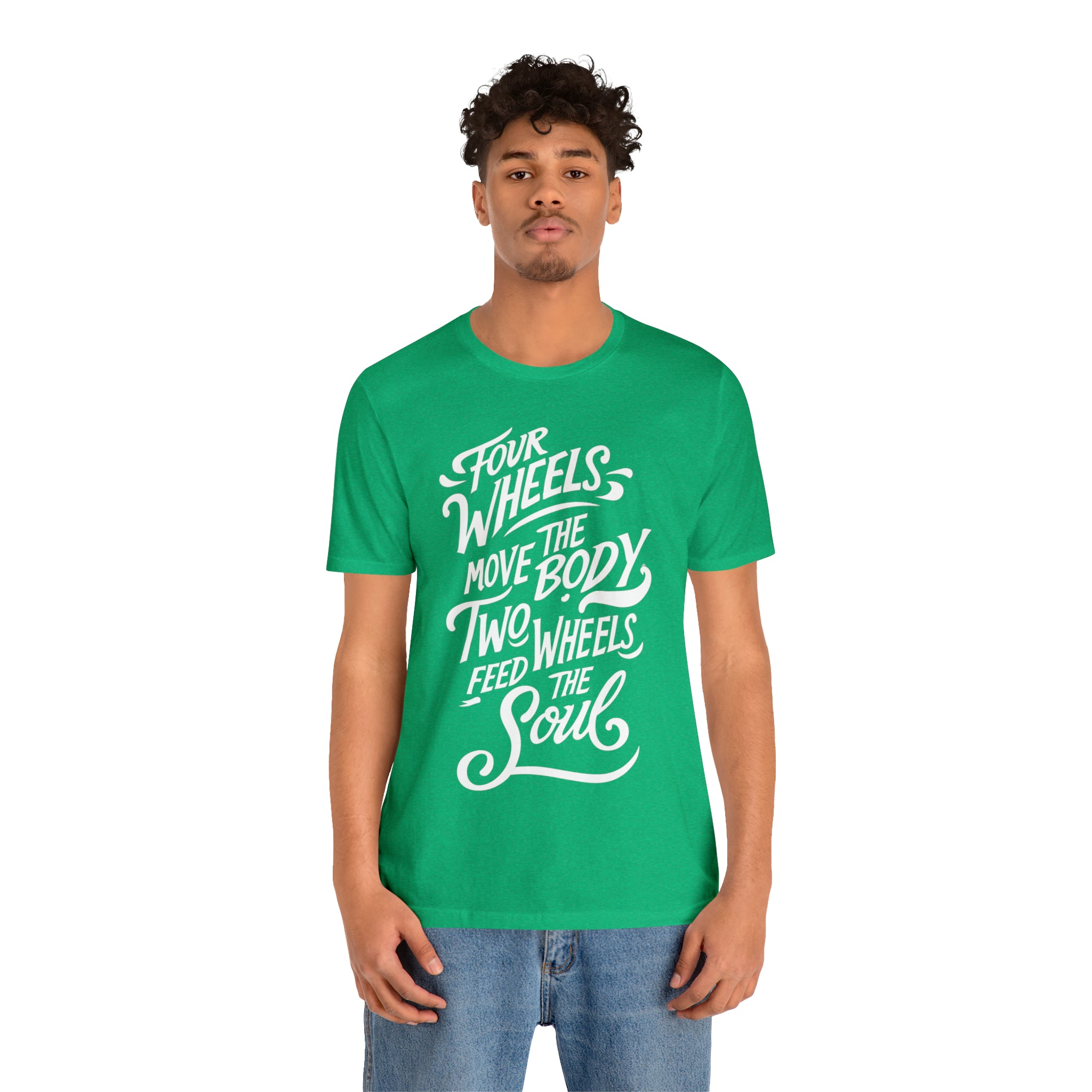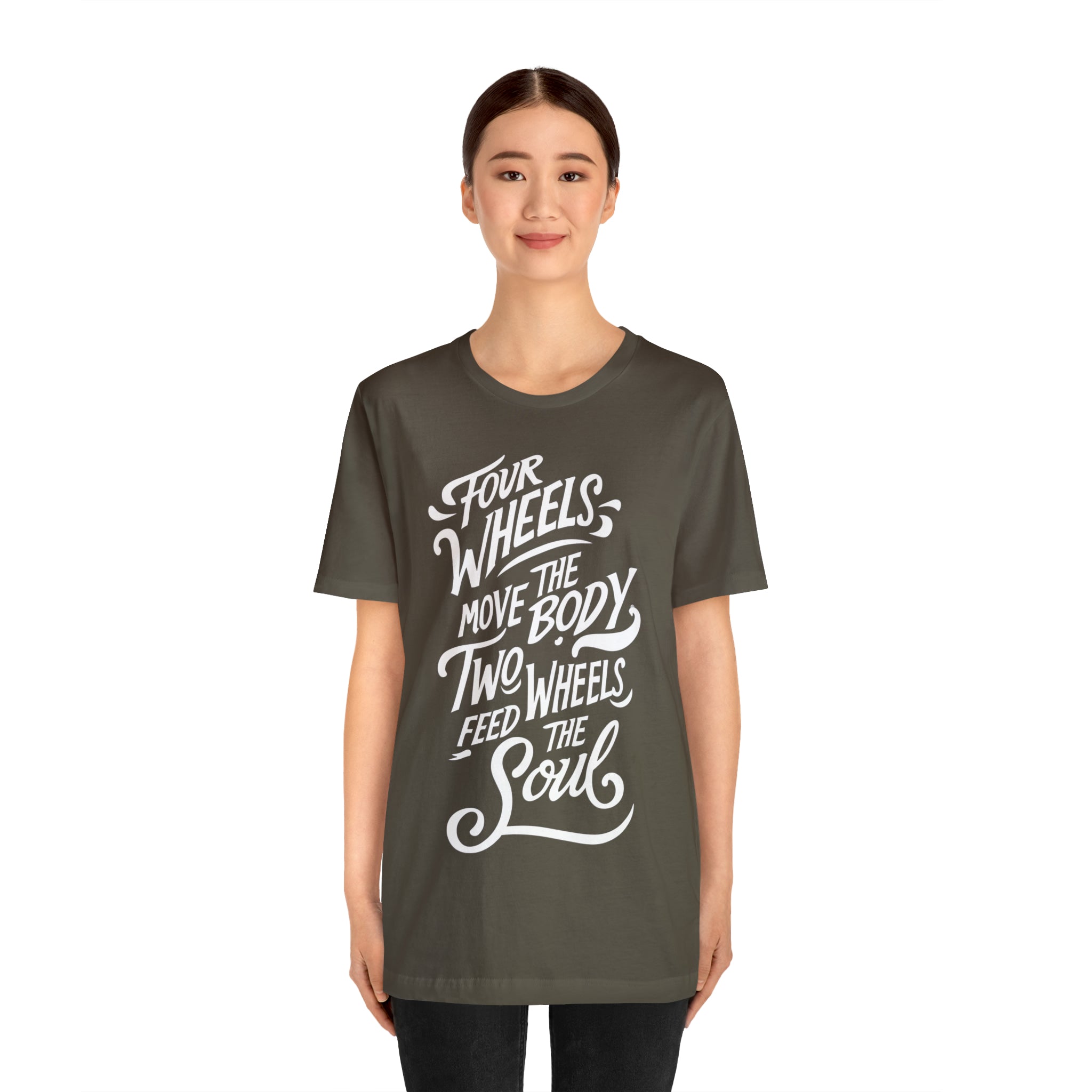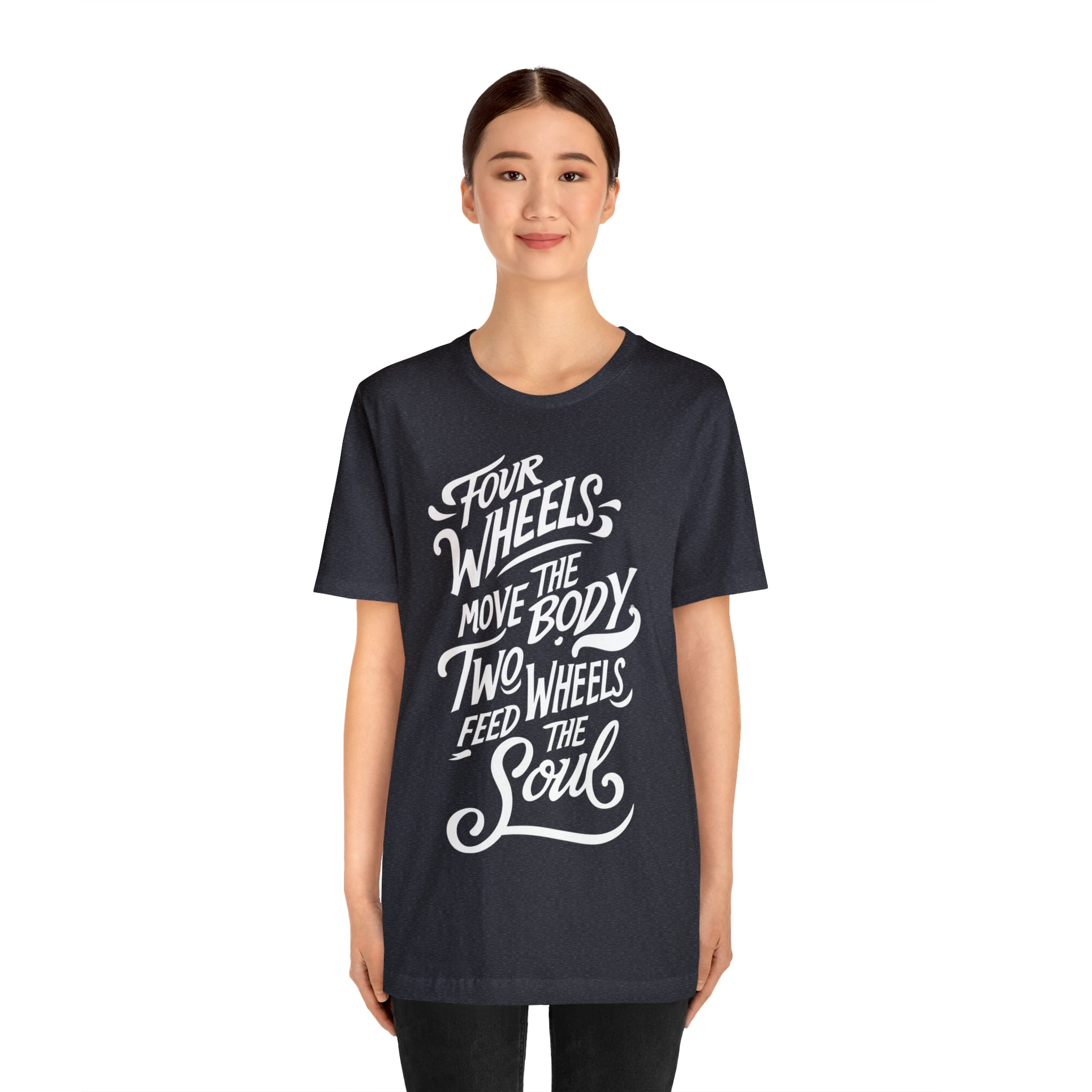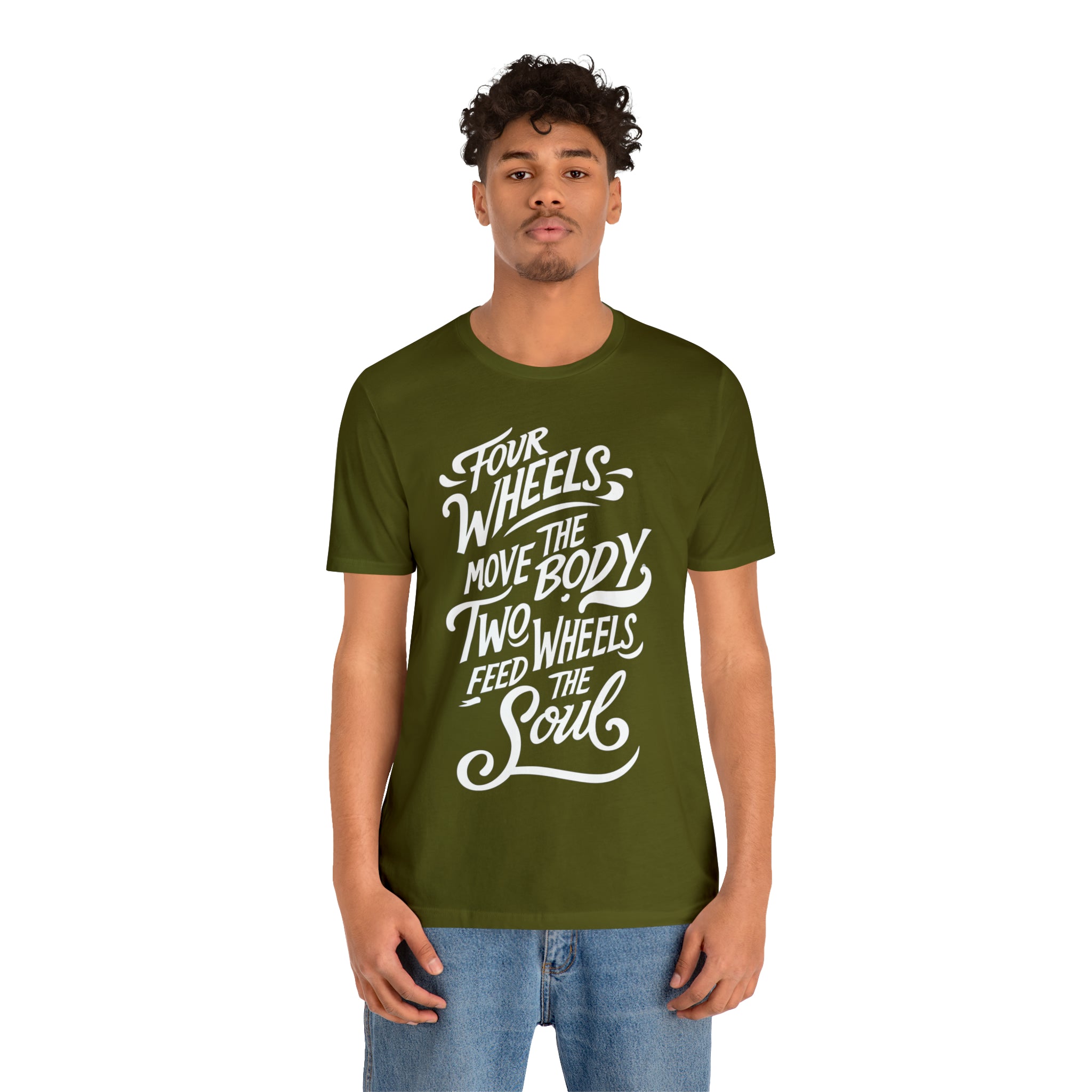 Go out in Style in this Tee. Made for motorcycle enthusiasts... 4 Wheels Move the Body 2 Wheels Feed The Soul!