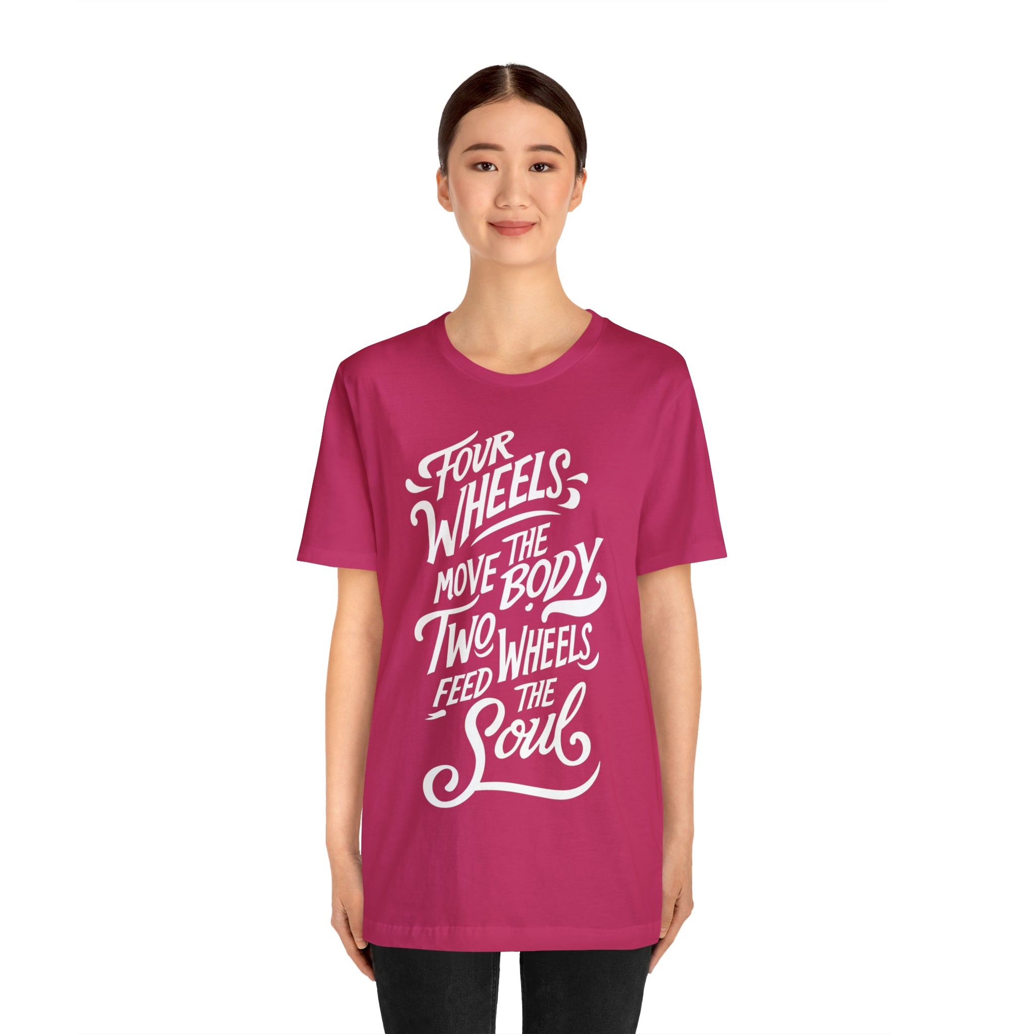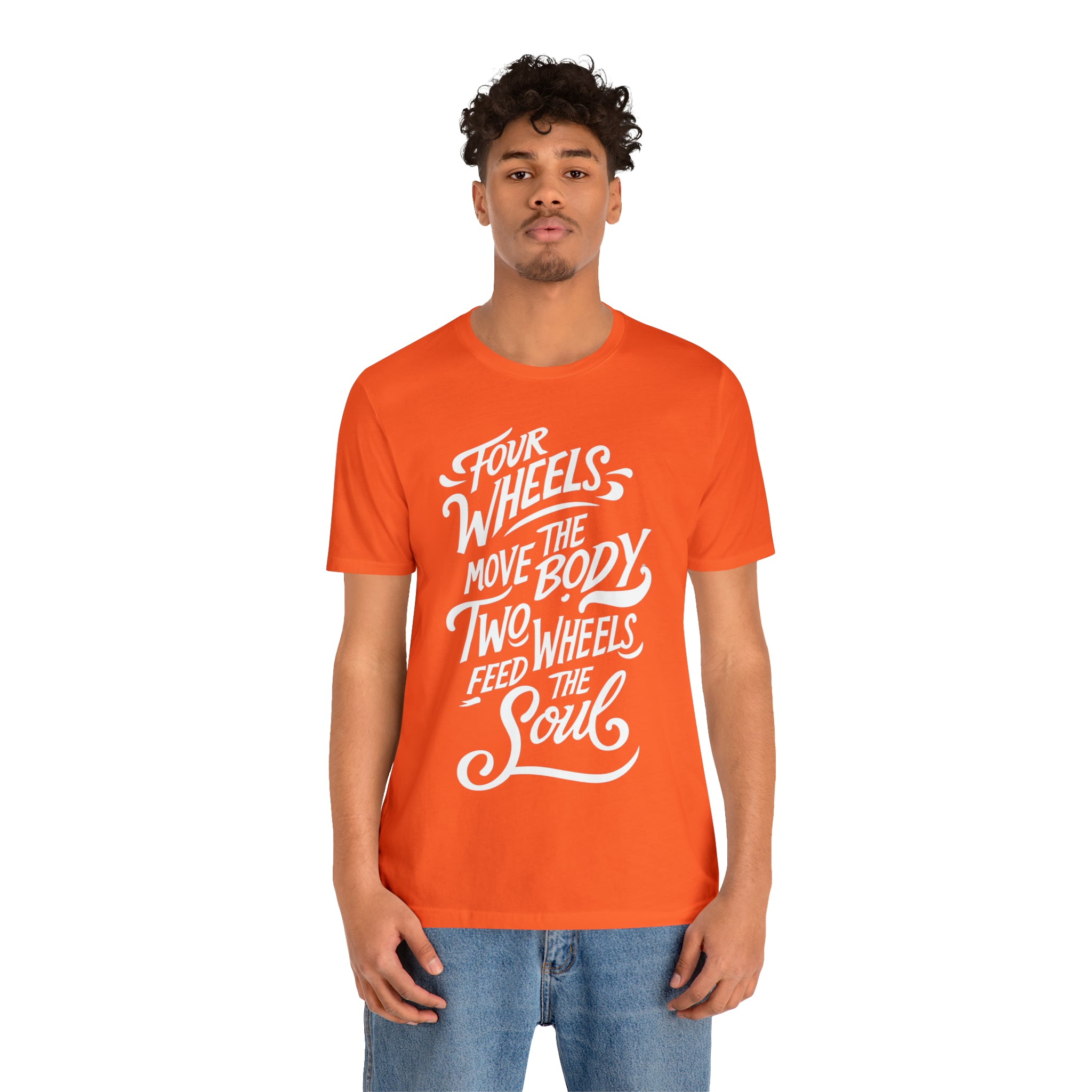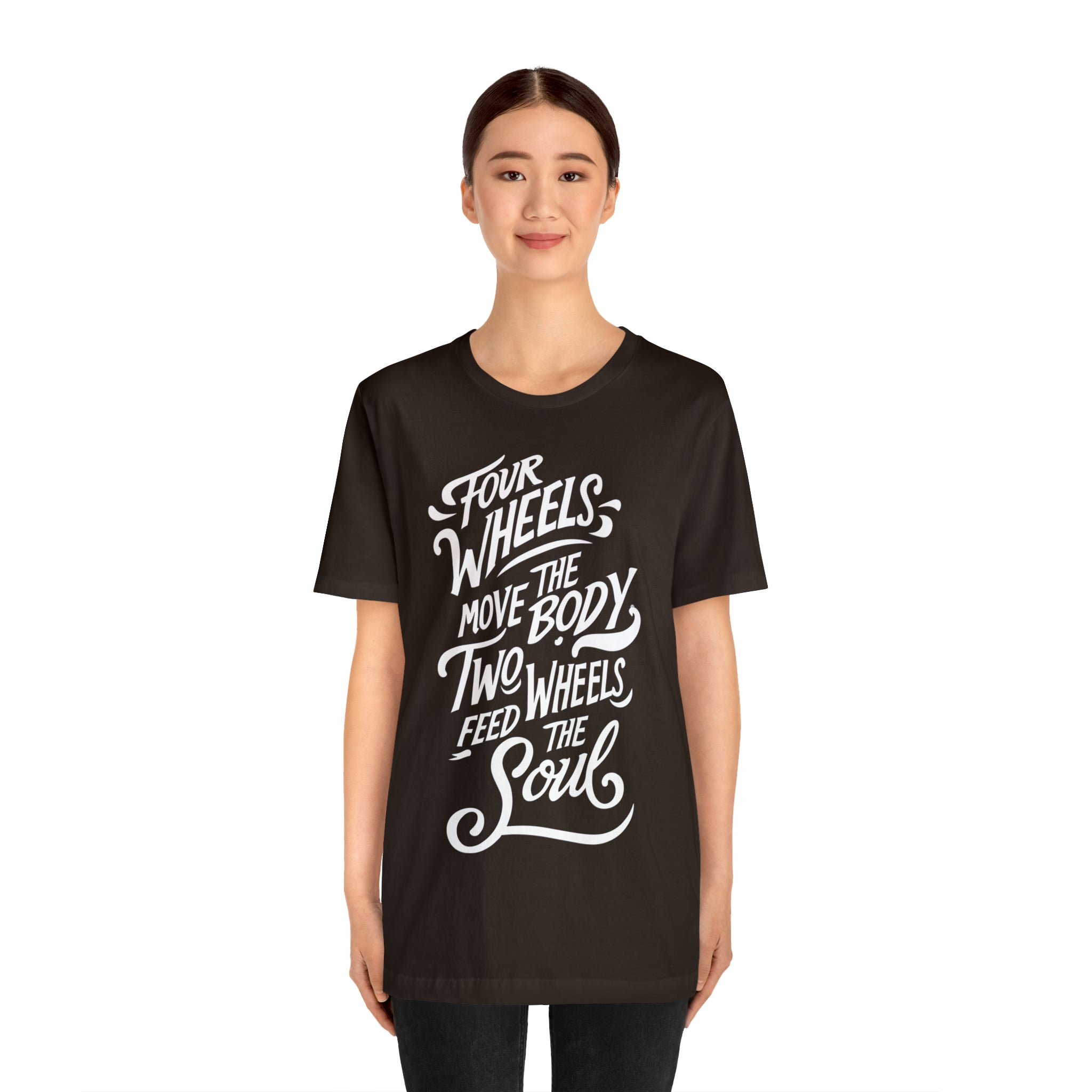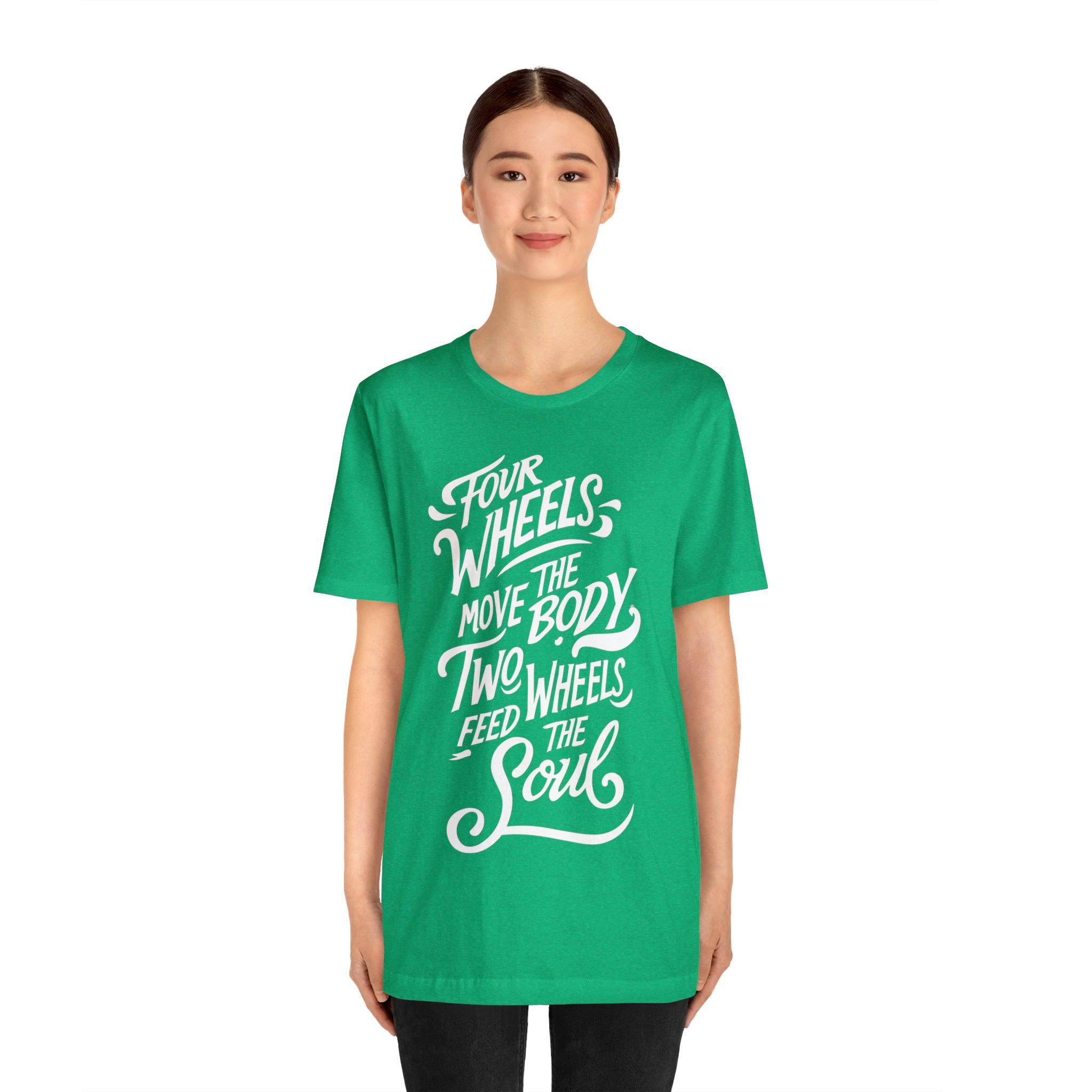 Go out in Style in this Tee. Made for motorcycle enthusiasts... 4 Wheels Move the Body 2 Wheels Feed The Soul!