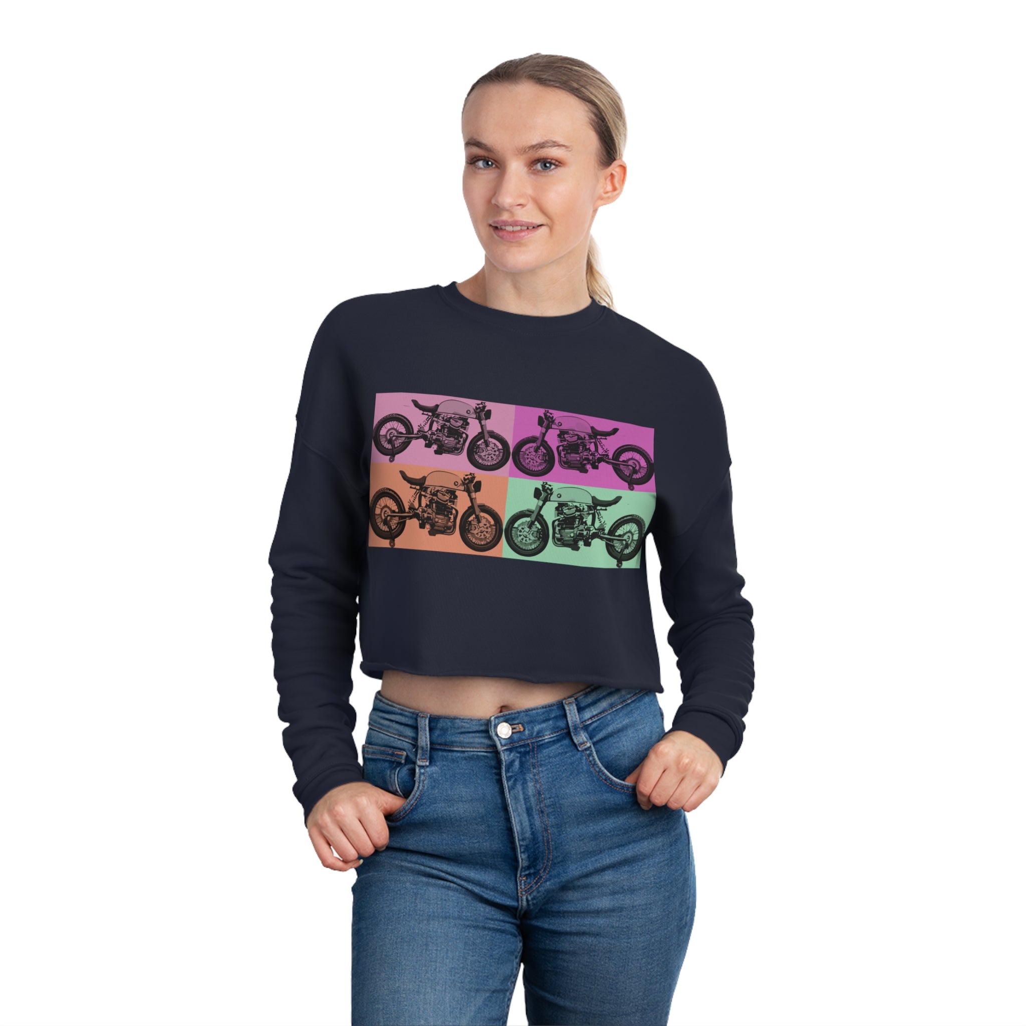 Retro Motorcycle Women's Cropped Sweatshirt!